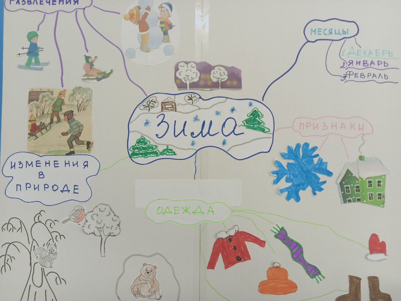 ❄Ребята группы "ЗВЕЗДОЧКИ" "собрали" образ снежной зимы на постере в формате интеллект-карты.